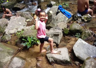 A Floresta te recebe com a bela vista da cachoeira….. uma queda d’água maravilhosa com um belo cenário. A recepção dos quatis também encanta os visitantes. Há um espaço tranquilo para que as criança possam tomar banho, sem muitas pedras e com a formação de uma pequena piscina. Um pouco acima você encontrará trilhas para todas as idades, açudes, espaço para piqueniques com churrasqueiras e parquinhos.