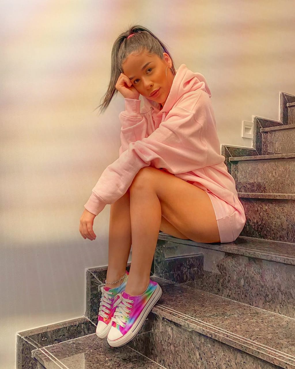 A influenciadora Laura Brito está sempre inovando em suas customizações. Aproveitando a tendência super em alta de tie-dye, ela aplicou a técnica em um tênis. Utilizando corante para tecido, a influencer transformou um tênis branco em um colorido super despojado e moderno.