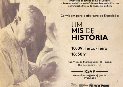 Depois de anos sem exposições fixas, o Museu da Imagem e do Som abre as portas da sua sede na Lapa e convida a população para uma viagem pelo seu acervo e suas coleções. Durante a mostra “Um MIS de História”, o passado e o presente desta instituição pioneira – que comemora 54 anos em setembro – vão estar disponíveis ao público, passeando por artistas como Augusto Malta, Jacob Bandolim, Elizeth Cardoso, Nara Leão, além da memória da Rádio Nacional e de tantos outros nomes da cultura brasileira.